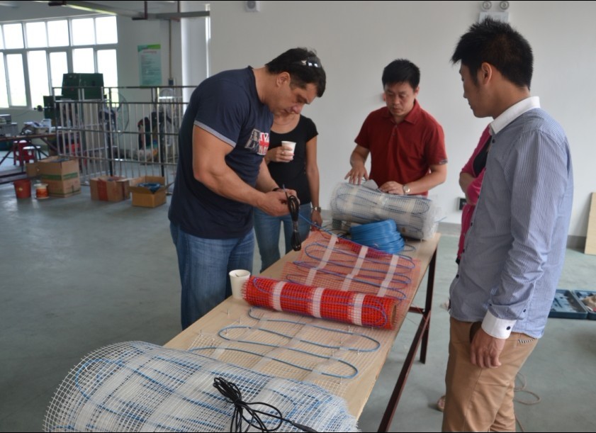 俄羅斯客戶參觀我司發(fā)熱電纜地席流水線