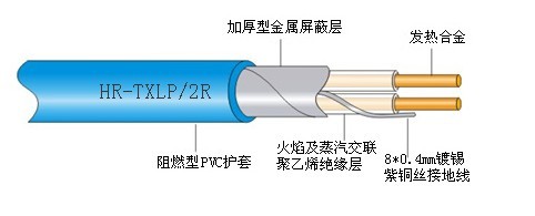 發(fā)熱電纜的發(fā)熱元件是由銅、鎳合金制成的電阻絲,在一根發(fā)熱電纜內(nèi),任意同等長(zhǎng)度距離內(nèi)的阻值是相等的。發(fā)熱電纜通過密封防水的接線盒與冷線相連,當(dāng)冷線被加上電壓后,電流在發(fā)熱電纜中通過,由于受到電阻的阻礙,電能轉(zhuǎn)化為熱能并以輻射的形式散發(fā)出來,其熱效率高達(dá)97%以上