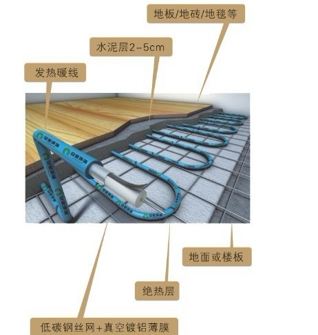 發(fā)熱電纜電地暖系統(tǒng)由發(fā)熱電纜和溫控器兩部分組成,發(fā)熱電纜鋪設(shè)于地面中,溫控器安裝于墻面上。當(dāng)室內(nèi)環(huán)境溫度或地面溫度低于溫控器設(shè)定的溫度時,溫控器接通電源,發(fā)熱電纜通電后開始發(fā)熱升溫,發(fā)出的熱量被覆蓋著的水泥層吸收,然后均勻地加熱室內(nèi)空氣,還有一部分熱量以遠(yuǎn)紅外輻射的方式直接釋放到室內(nèi)。該種方式的采暖系統(tǒng)把整個地面作為散熱器,室內(nèi)溫度上層低而下層高,有溫足而頂涼的感受,使您感到舒適而自然。