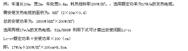 關(guān)于車道融雪化冰,為節(jié)省出資,不用在車道整個(gè)區(qū)域鋪設(shè)加熱電纜,通常裝置在車輪通過(guò)的當(dāng)?shù)鼐妥銐蛄???蛇x用單位裝置面積功率為200~250W/㎡,并選用帶地上傳感器的溫控器來(lái)操控。