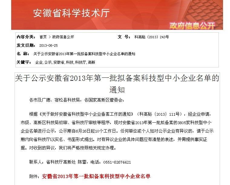 根據(jù)《關(guān)于做好安徽省科技型中小企業(yè)備案工作的通知》(科高秘〔2013〕111號(hào)),經(jīng)企業(yè)申請(qǐng),市級(jí)、高新區(qū)科技局初審、省科技廳審核等程序,安徽環(huán)瑞入選2013年第一批備案科技型中小企業(yè)。