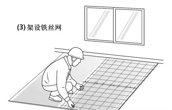 2、鋪設(shè)鋼絲網(wǎng),用塑料扎帶連接鋼絲網(wǎng);