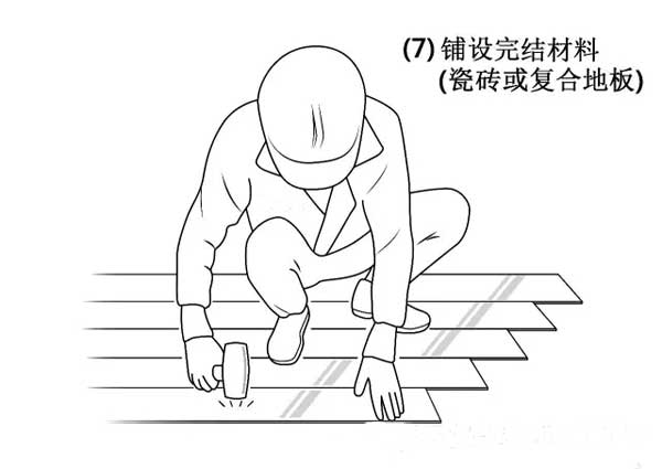 6、鋪設(shè)地面材料(瓷磚或復(fù)合地板);